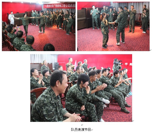 的冲击,引发各自内心的思考,有一位哲人说过,不要以为你什么都行,离开了团队,你可能一事无成,有了团队,一切皆有可能。非常感谢每位员工的积极参与和真诚相待,希望我们都能用心去体会拓展的核心精神,不断提高和强化个人心理素质,更深刻的去体验个人与企业,下级与上级,员工与员工间唇齿相依的关系,从而激发出团队更高昂的工作热诚和拼搏创新的精神动力,让我们的团队更富凝聚力和战斗力。