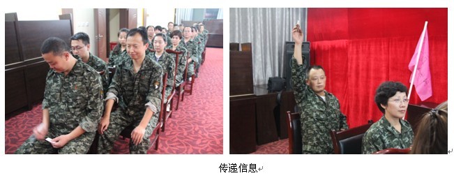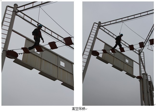 经过换装、简单的热身和开营仪式以后,全司43名干部职工被分为两队——金刚对、火焰队,两队确定了各自的队呼、队旗、队徽和队歌,选举了队长、副队长、安全员、宣传员、卫生员,先后进行了开营、传递信息、高空断桥、高空吊桥、信任背摔、穿越电网、飞夺泸定桥、闭营。