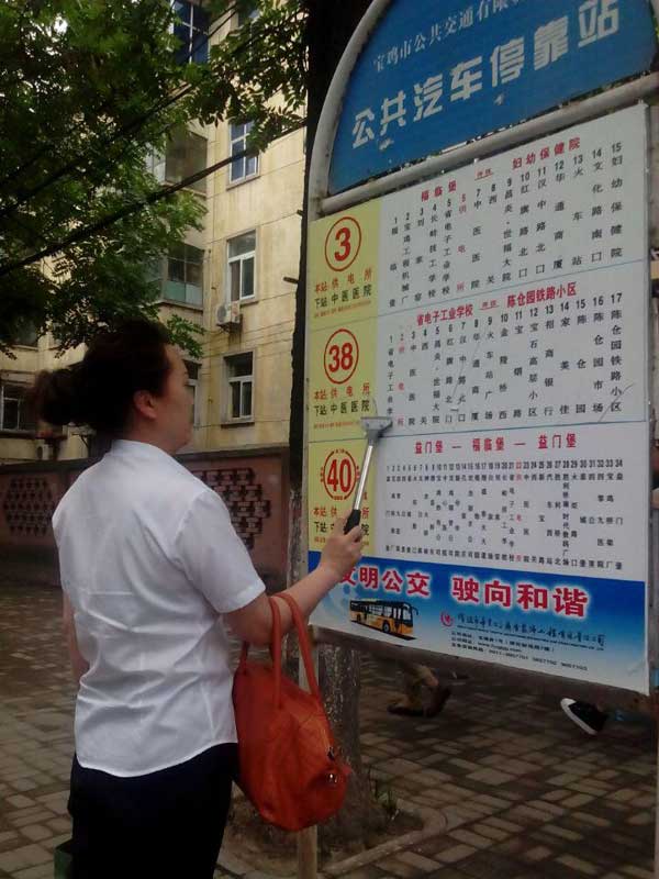 公司于7月18日安排机关人员对全市的公交候车亭、站牌进行了全面的排查,累计出动21人,保洁候车亭、站牌400块,清理野广告453块,检查出站牌面板破损30多处、站名掉角、起角、卷边等10多处,对以上问题检查人员现场能够解决的已当场进行了处理,对无法当场解决的问题,公司进行汇总后,在近期内尽快安排专人统一进行处理。