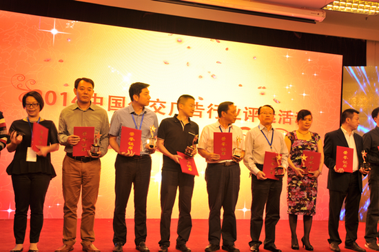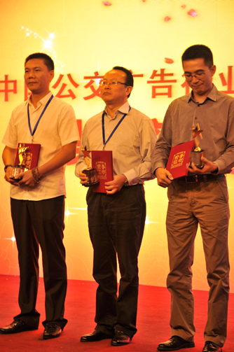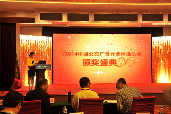 【本站消息】在刚刚结束的中广协公交分会2014年年会暨公交分会成立20周年纪念会上传来喜讯,广告公司被授予2014年中国公交广告行业最具竞争力公司荣誉称号,总经理王宝健被授予2014年中国公交广告行业十大经理人荣誉称号。【题图为颁奖现场图片剪辑】