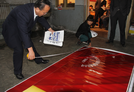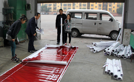 坐车到达制作车间,会同喷绘公司和设计部、制作车间负责人,一同验收晚上制作的画面。并协调调车,安排晚上广告的制作。