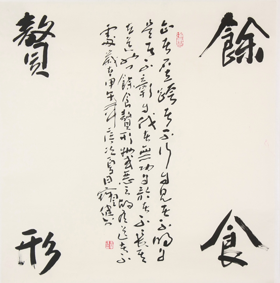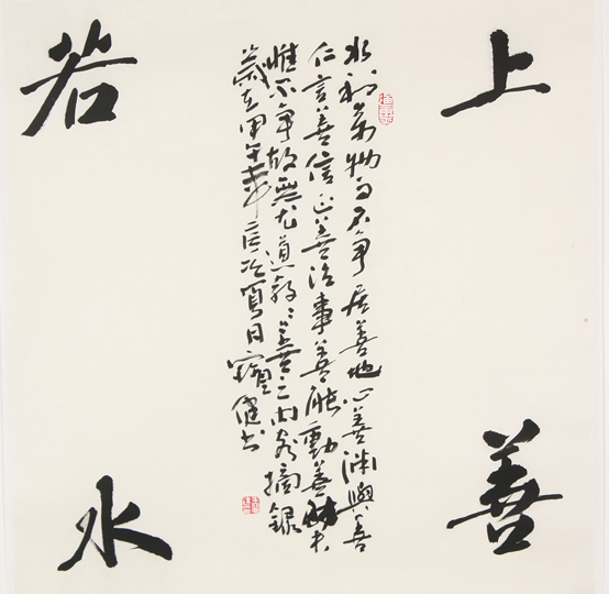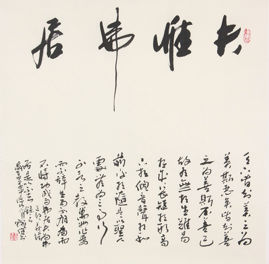 书画同源,画为心声,书为心画。书法也是他精神家园的一部分,他的书法用笔流畅自然,天真烂漫,朴素中透着一份灵气,大气中少了霸悍。他也极喜制印,他的印师从汉印,古朴率真,自然天成。
