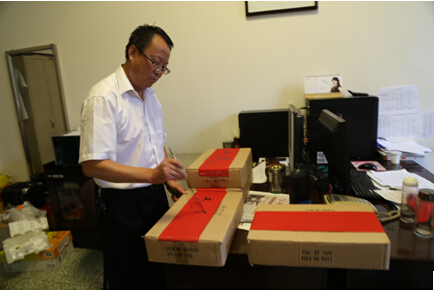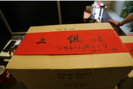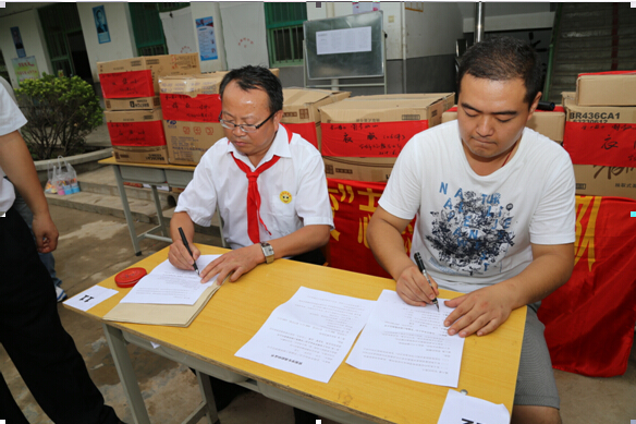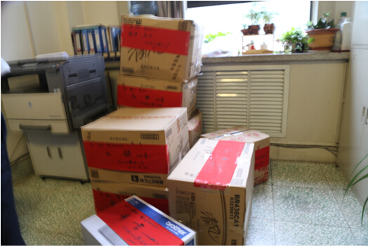 在6月29日下午,广告公司办公室人员将大家捐助的衣物以及购买的学习用品,分类进行了装箱,王宝健总经理亲自为捐赠物品书写明细。