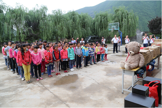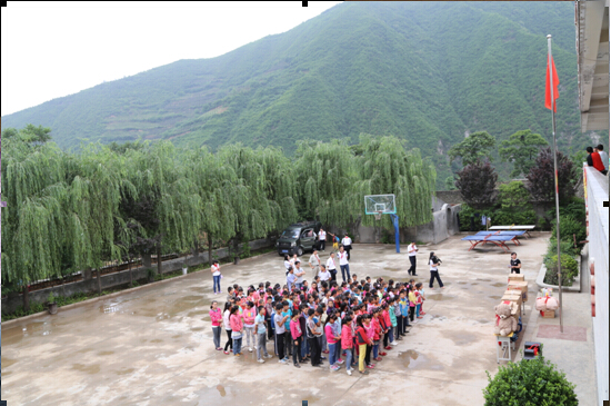 在学生们考试结束后,孩子们与我们一起列队,迎接捐赠仪式的启动: