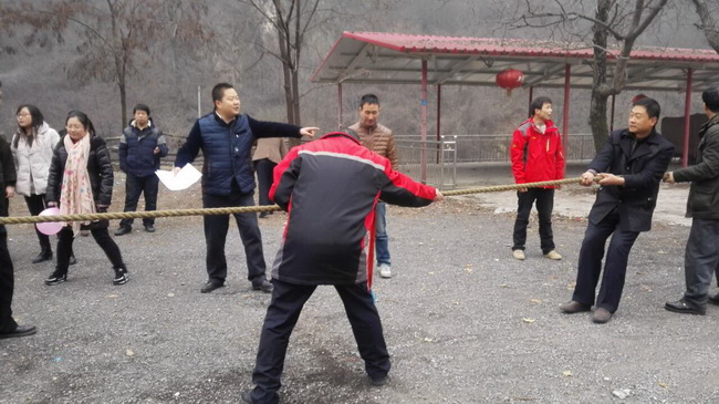 本次迎新年运动会共分为四个角逐项目:跳绳接力、背气球、拔河和老鹰抓小鸡。公司全体员工共分为四组,场面激烈宏大。