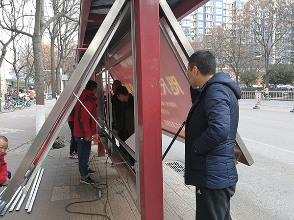 广告市场不断变化,广告媒体也在日新月异。入冬以来,华业公交广告公司为了适应市场发展,充分发挥自身资源优势,加班加点对市区繁华路段14座普通候车亭灯箱进行升级改造。我们分析市场,针对高端客户,推出了动感灯箱新媒体,此媒体广告画面采用刀刮布喷绘,内置集成线路板和灯珠,经过软件设计,对发光板进行控制,夜间让广告画面流光溢彩。