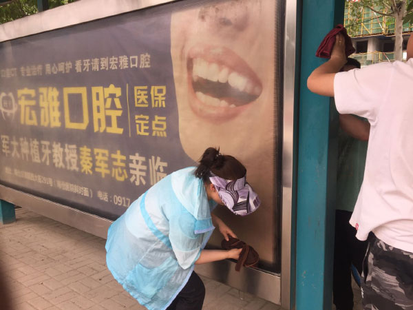 在公司领导的带领及公交驾校的全力支持配合下,我们全员出动,将户外媒体维护保洁作为常态化的工作内容,不论严寒酷暑。