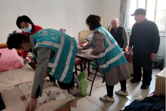 活动期间,大家陪老人拉家长聊天,帮忙打扫房间卫生并讲解疫情期间的防护事项。