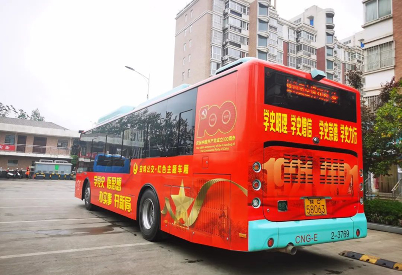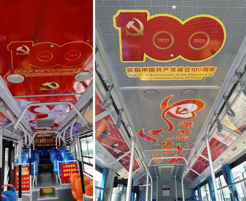 2021年是崭新的一年,是红色的一年。今年,是中国共产党成立100周年,广告公司积极响应号召,利用自身媒体优势,从车外到车内,加班加点设计、制作,专门打造了三台主题车厢,其中两台建党百年纪念车厢,一台五四主题车厢,致敬中国共产党成立100周年。