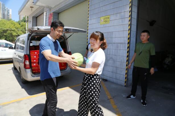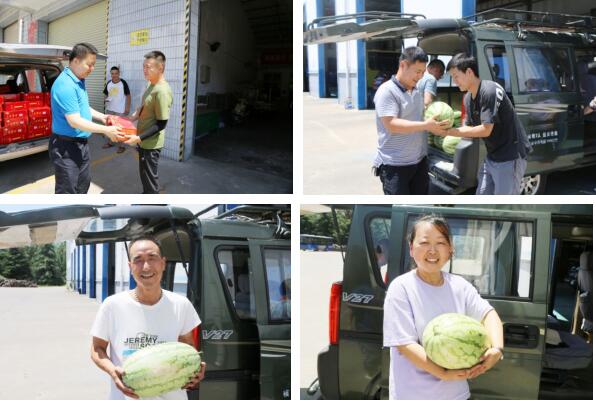 为此,在7月13日上午,公司领导班子前往两个制作车间,为坚守在第一线的职工们送上一份清凉。公司事先准备了大量的降暑饮品及西瓜,一个个、一件件递到制作工人手中,并叮嘱大家要合理安排工作,注重岗位安全,提高夏日防暑意识,保证自身安全健康。