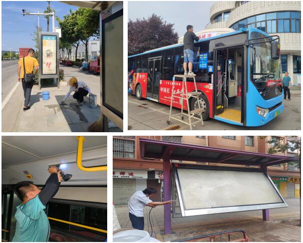 在宝鸡2022年创文复检期间,公交广告公司全员出动,克服各种极端天气,在加之难遇的高温下,对全市的1000多个公交站点,876座灯箱候车亭,以及700余块路名牌进行又一次全面排查、清洁、维护和整改。40度的高温下,广告公司领导班子带头行动,全体工作人员坚持零休假,认真处理好每天超过七十余项的临时性突发数字化案件。