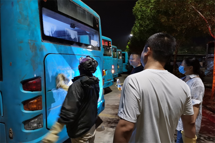 营运,9月15日晚,广告公司全体人员 挑灯夜战、争分夺秒,对交付的48台公交车的车厢内外各项服务设施进行逐一安装。